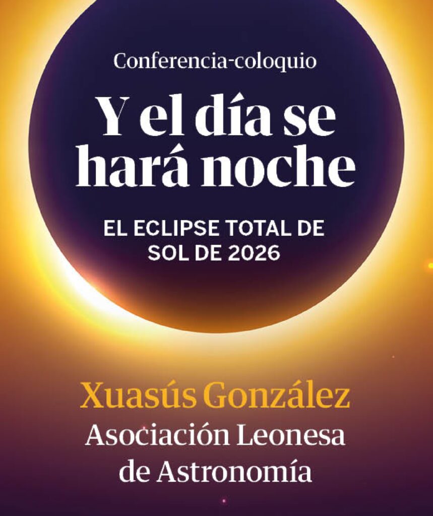 Xuaxús González. Asociación Leonesa de Astronomía. Sala de Exposiciones César Ordoñoz. Ateneo Cultural «El Albeitar». Martes 25 de noviembre de 2025 Xuasús González, , explica los detalles del eclipse total de sol que se producirá el 12 de agosto de 2026 y será visible desde León, un acontecimiento único que tardará más de cuatro siglos …